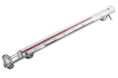 內(nèi)浮式磁性液位計(jì)是一種雙腔液位計(jì),被測(cè)介質(zhì)與磁性面板端的腔體隔離,容器端腔體內(nèi)部與浮子經(jīng)過(guò)特殊處理后,確保了浮子跟隨液位的變化線性地傳遞給磁性面板,并清晰準(zhǔn)確地指示出液位的高度。它即能現(xiàn)場(chǎng)顯示,兼顧報(bào)警控制和輸出遠(yuǎn)傳信號(hào)。是一機(jī)多能的液位測(cè)量?jī)x表,是測(cè)量粘稠介質(zhì)的液位測(cè)量?jī)x表。